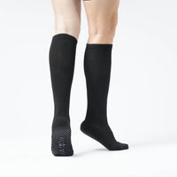 Viasox Compression + Gripper Technology socks combine safety and relief in one design. Silicone grip dots on the sole deliver dependable traction on tile, hardwood, and other smooth floors to prevent slips and falls. Featuring mild graduated compression, they help reduce swelling, ease leg fatigue, and boost energy levels. Designed for a comfortable, supportive fit from ankle to calf, they’re easy to wear and perfect for daily use.