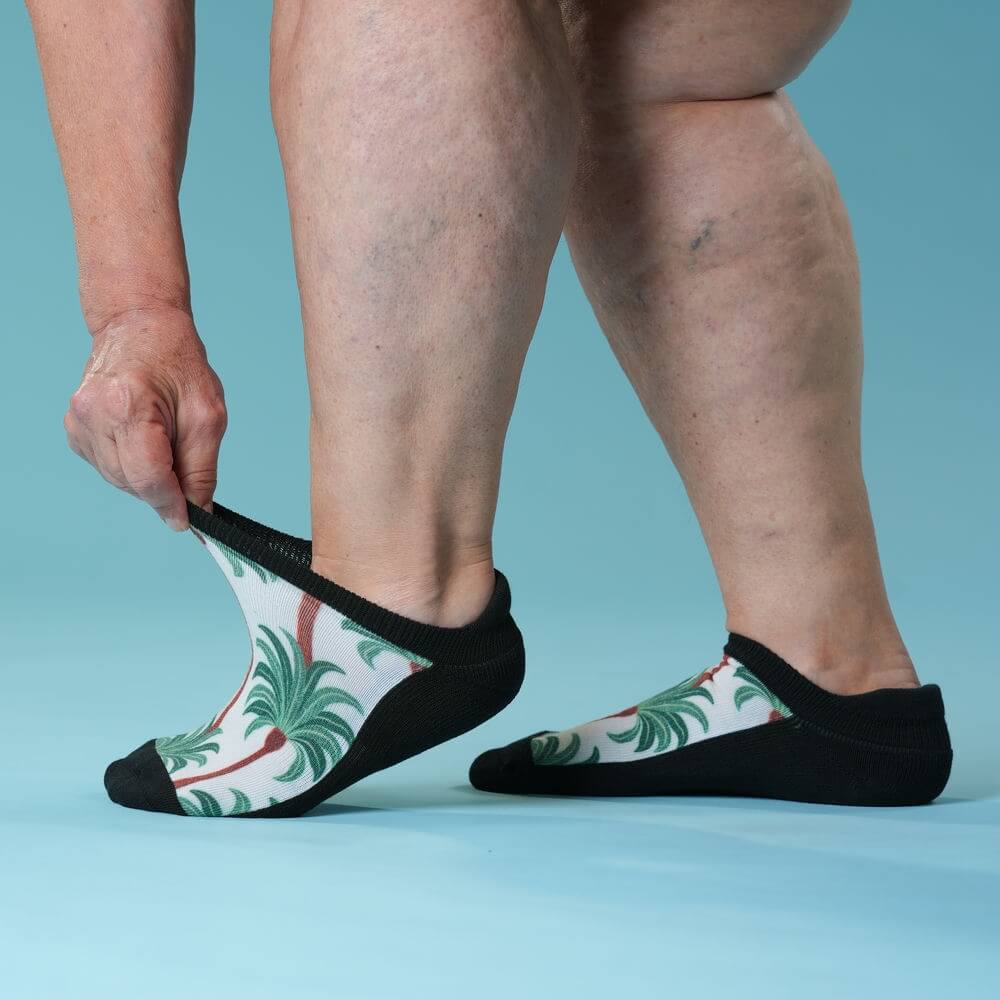 Viasox Ankle Socks are unmatched in stretchiness, designed to comfortably accommodate larger feet and ankles. Their ultra-stretchy design eliminates tight marks and discomfort, providing a gentle, secure fit for all-day comfort.