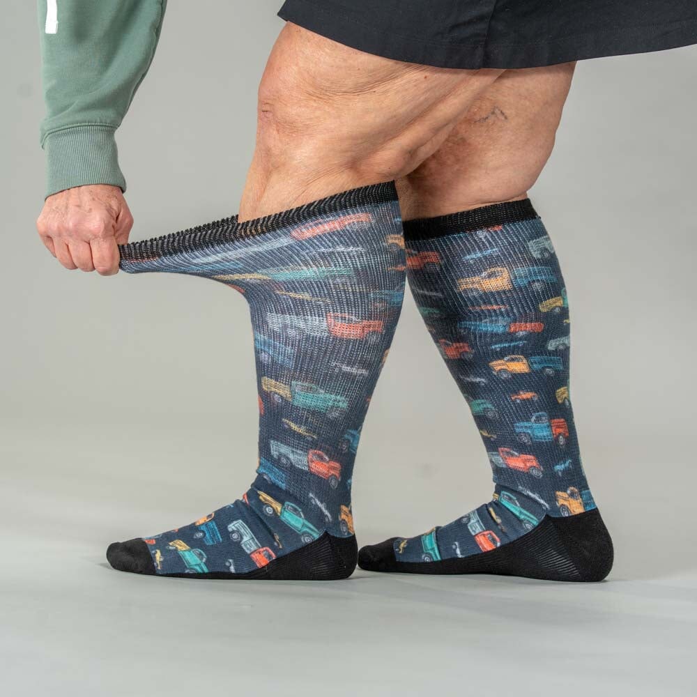 Viasox EasyStretch™ Socks are the stretchiest socks available, designed to fit comfortably on legs and feet of all shapes and sizes. Their ultra-stretchy, non-restrictive design eliminates tightness and irritation, providing unparalleled comfort for all-day wear.