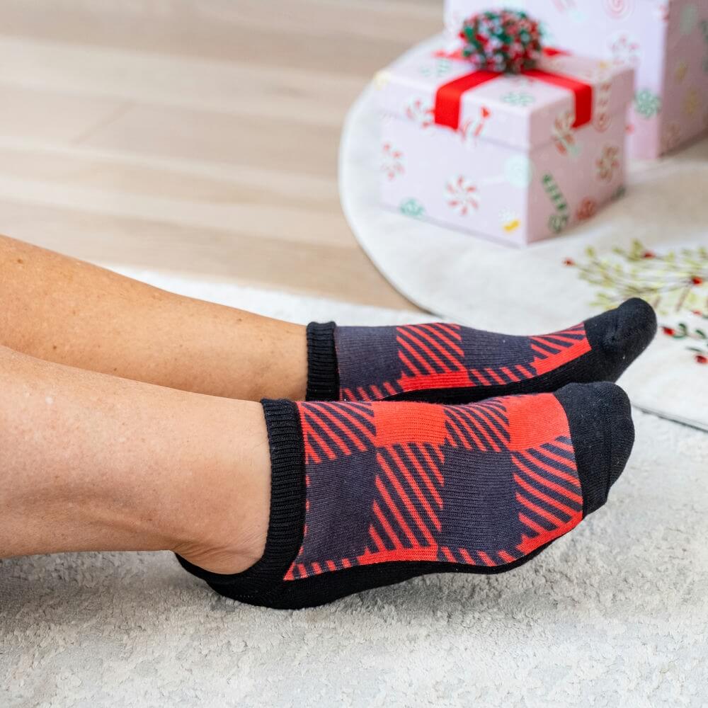 Red Plaid Ankle Socks